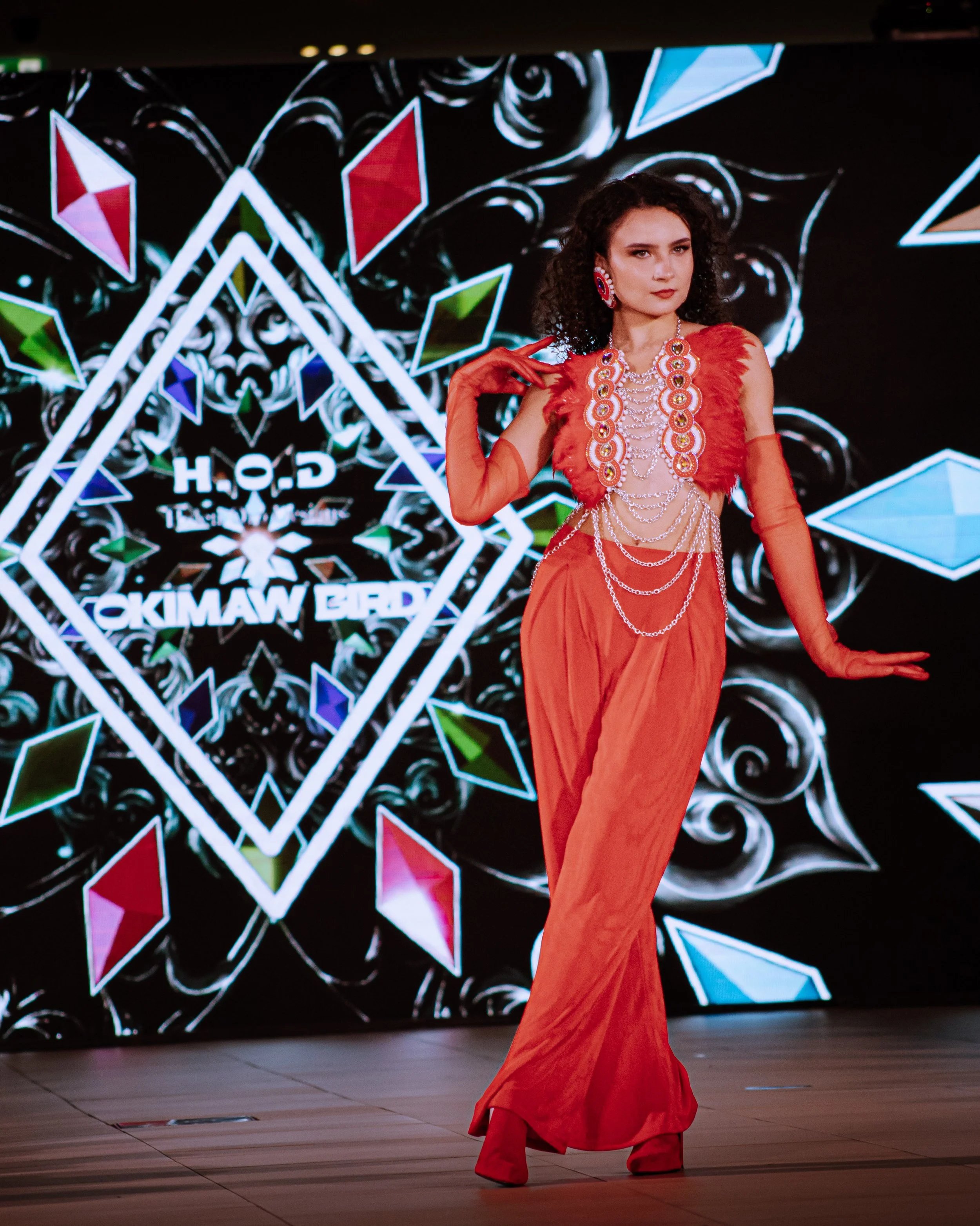 VELVET, is a mixed Nehiyaw and Metis mother of 2 who has a passion for finding new ways to create. She showcased a combination of pieces made using her signature technique of creating material made of rhinestone ribbon as well as culturally inspired looks.